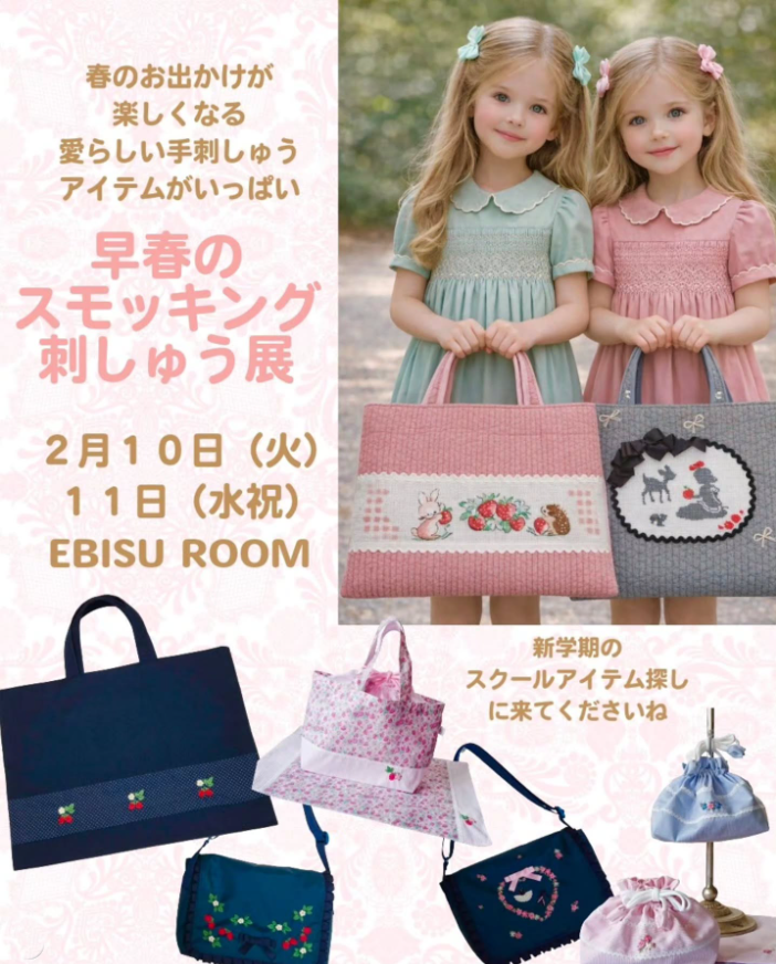 スモッキングワンピースや小物のポップアップストアです。
